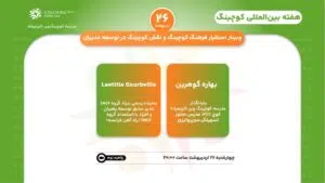 وبینار تجربیات کوچینگ سازمانی در فرانسه در دومین وبینار هفته کوچینگ، روز چهارشنبه ساعت ۲۰ شب ایران، بهاره گوهرین و خانم laetita Gourbeille مدیر سابق توسعه.... 11 تیر 1403